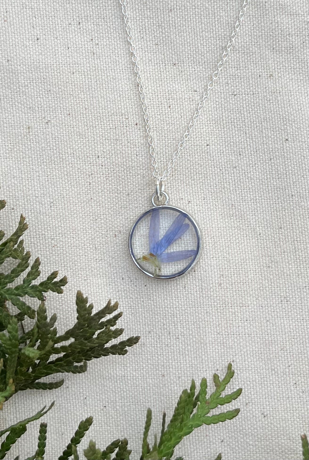 This silver necklace has Aster petals in it to represent the month of September.
